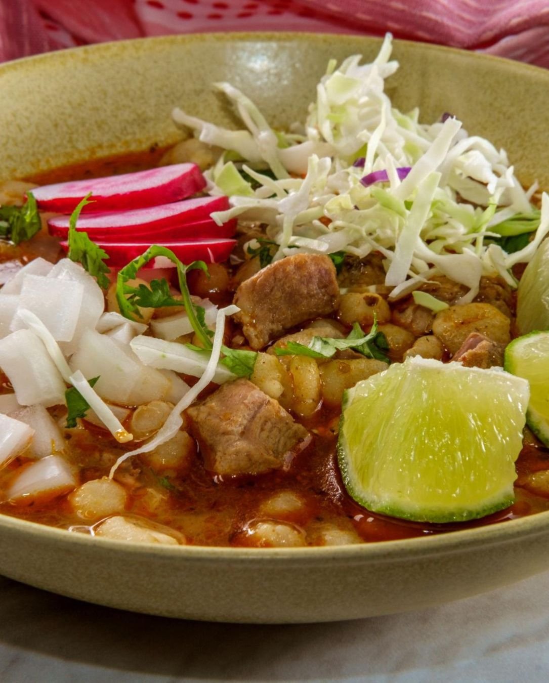 Cerdo marinado en achiote y jugo de naranja agria, cocido lentamente y servido con cebolla morada y tortillas calientes.