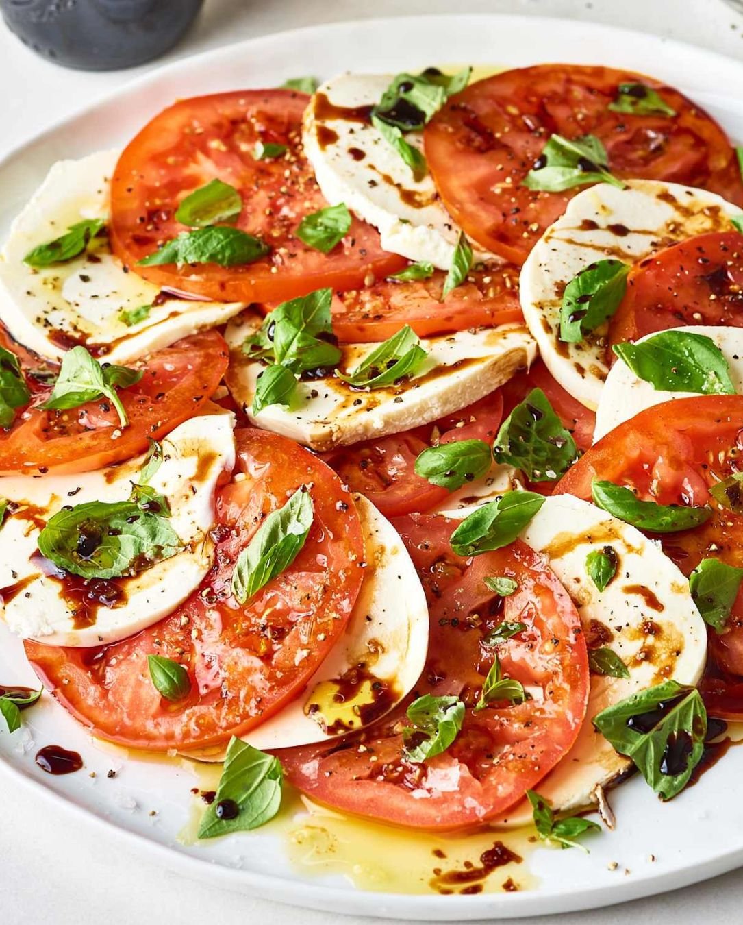 Tomate fresco, mozzarella, albahaca y aceite de oliva extra virgen. Simple, fresca y elegante.