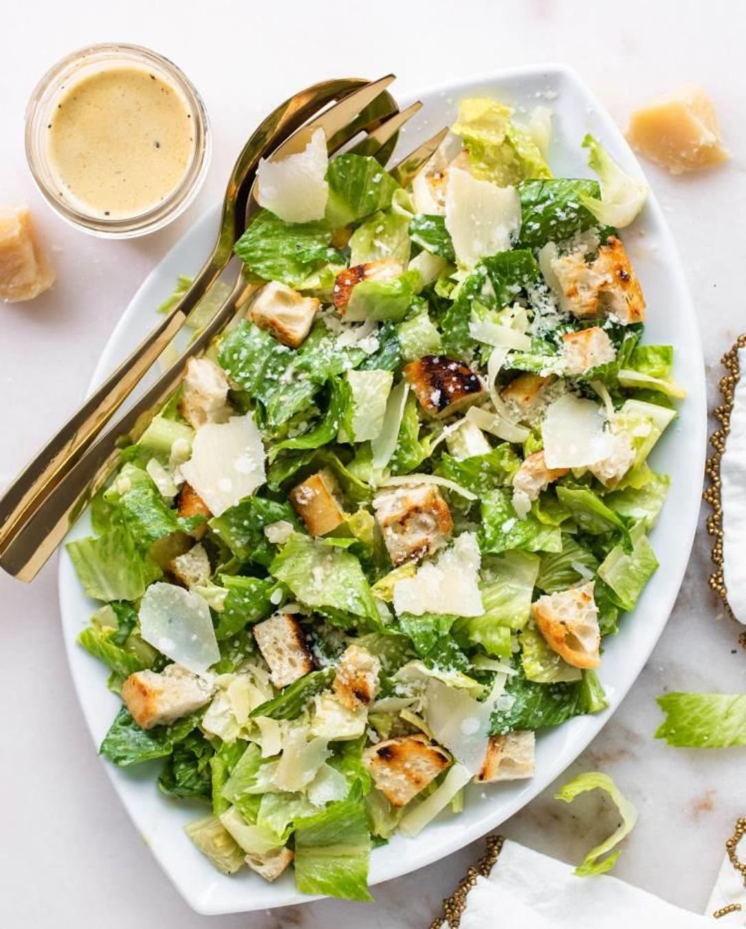 Lechuga romana fresca, crotones crujientes, queso parmesano y aderezo César tradicional.